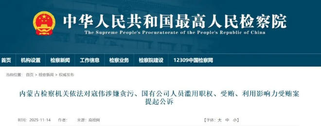 中國大唐集團(tuán)有限公司原黨組副書記、總經(jīng)理寇偉涉嫌貪污、國有公司人員濫用職權(quán)、受賄、利用影響力受賄一案,由國家監(jiān)察委員會(huì)調(diào)查終結(jié),移送檢察機(jī)關(guān)審查起訴。最高人民檢察院依法以涉嫌貪污罪、國有公司人員濫用職權(quán)罪、受賄罪、利用影響力受賄罪對(duì)寇偉作出逮捕決定,并指定由內(nèi)蒙古自治區(qū)人民檢察院興安盟分院審查起訴。近日,內(nèi)蒙古自治區(qū)人民檢察院興安盟分院已向內(nèi)蒙古自治區(qū)興安盟中級(jí)人民法院提起公訴。