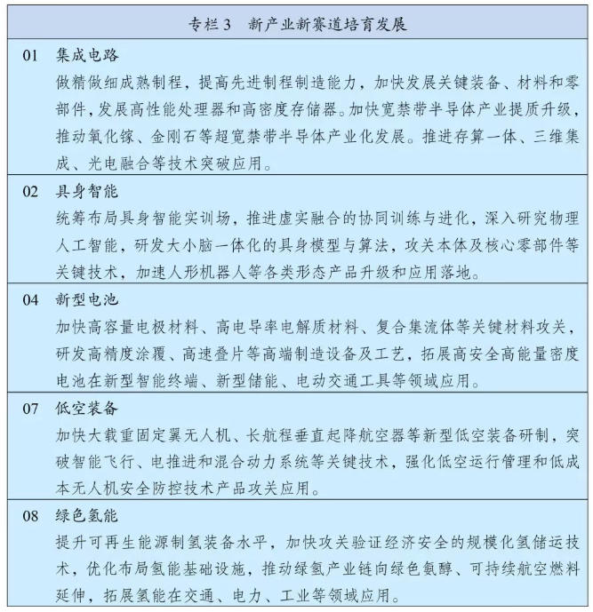 《綱要》提出,要前瞻布局未來產(chǎn)業(yè),瞄準引領未來發(fā)展重點領域,構(gòu)建未來產(chǎn)業(yè)全鏈條培育體系,推動量子科技、生物制造、氫能和核聚變能、腦機接口、具身智能、第六代移動通信等成為新的經(jīng)濟增長點。加強未來產(chǎn)業(yè)識別和動態(tài)調(diào)整,強化基礎性、前沿性、顛覆性技術布局。