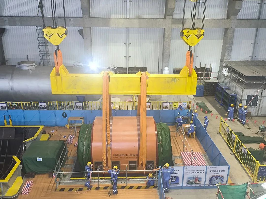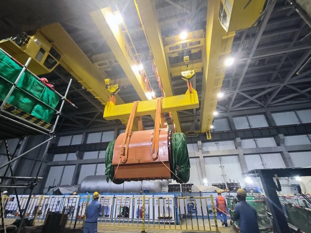 “玲龍一號”全球首堆常規(guī)島汽輪發(fā)電機(jī)組定子吊裝就位