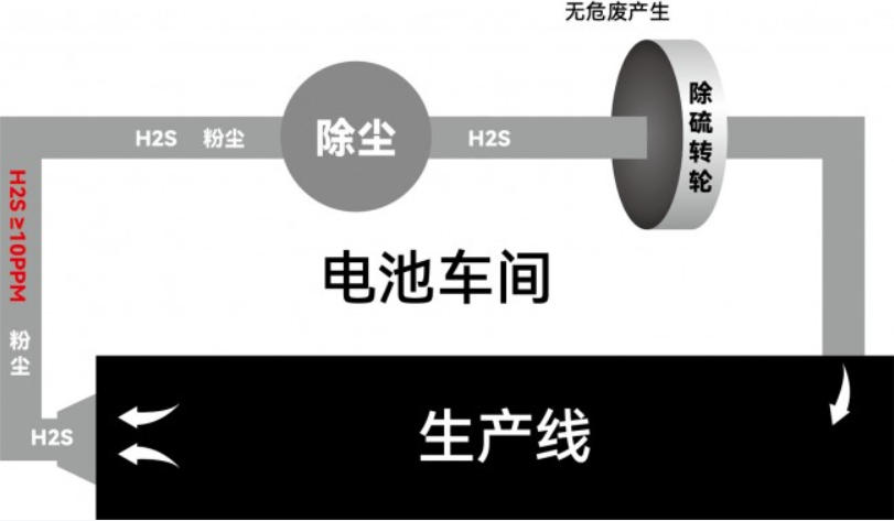 在固態(tài)電池規(guī)?;a(chǎn)線中,除常規(guī)活性炭外,普沃思自主研發(fā)的H?S吸附轉(zhuǎn)輪吸引了多家電池企業(yè)固態(tài)電池中試線的關(guān)注。該技術(shù)無需像活性炭那樣定期停機(jī)更換過濾器,也不產(chǎn)生危廢。